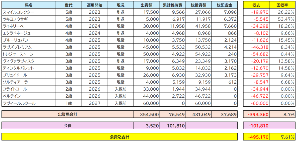 そんな中ですが、デビュー戦を目指していたヴィヴァラヴィスタが骨折によりデビューを断念しファンド解散となりました。