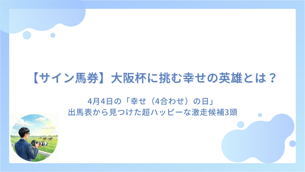 【大阪杯2026サイン馬券】4月4日は「幸せ(4合わせ)の日」!週末に大波乱を呼ぶ”超ハッピー”な3頭はコレだ!