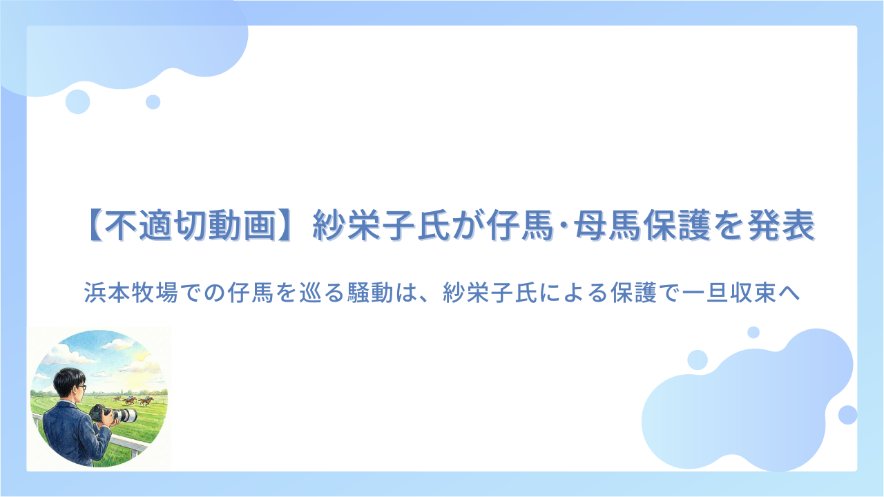 紗栄子氏は「残された馬たちのことも心配だが、今は目の前のこの親子を守ることに集中する」と述べ、改めての報告を約束しています。
