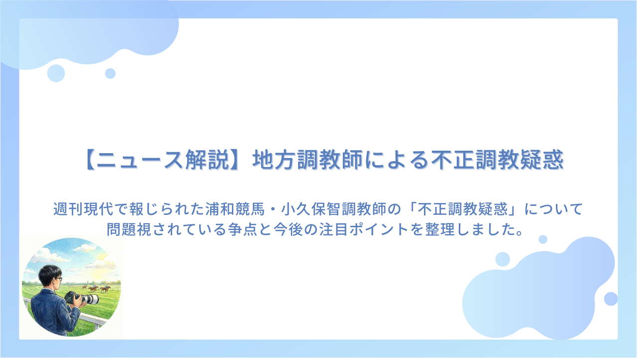 競馬ファンとしては、一部の報道やうわさだけで個人を断罪するのではなく、埼玉県や組合からどのような公式発表がなされるのか、引き続きフラットな目線で推移を見守る必要がありますね。